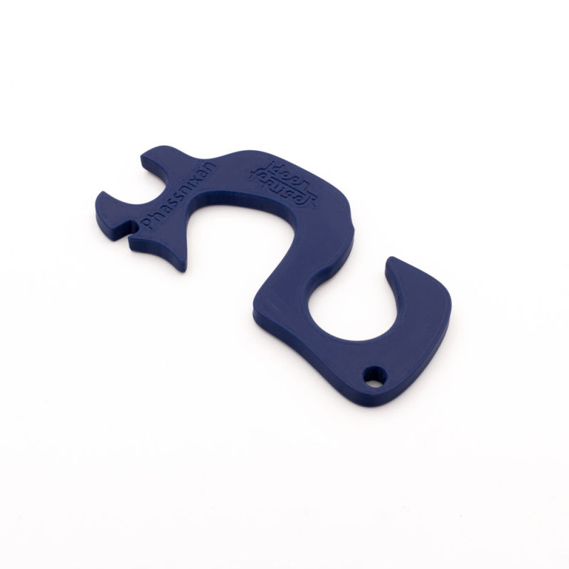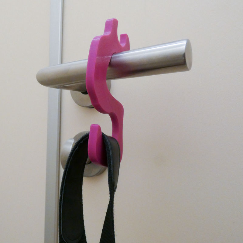 Durch die Öffnung am Fingerloch entsteht ein Haken, an dem Du Deine Jacke oder Tasche an die Klinke hängen kannst. Eine kleine Kerbe an der Seite ermöglicht es Dir auch einen Schlüssel bequem zu drehen.